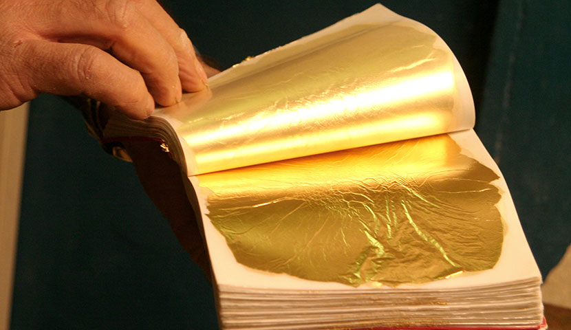ورق طلا بسیار حساس بوده و به محض برخورد با سطح چسب خورده به آن می چسبد.
